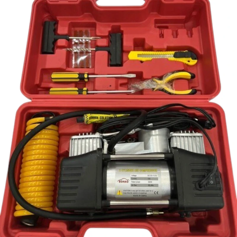 همراه این پمپ باد، پک کامل پنچرگیری و ابزارهای ضروری ارائه میشود که شامل نازلها، سوزن، کاتر، دم باریک، چسب مایع و سایر تجهیزات است و هر رانندهای را برای شرایط اضطراری آماده میکند. طراحی جمعوجور و کیف مخصوص حمل، امکان استفاده راحت در خانه، خودرو یا سفرهای جادهای را فراهم میکند.