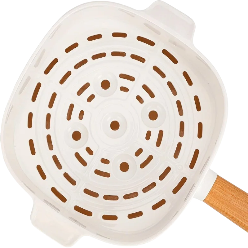 طراحی مدرن و رنگ سفید جذاب آن، ظاهر آشپزخانه را زیباتر میکند. دستههای نسوز و ایمنی بالا نیز کار با آن را راحت و ایمن میسازند.