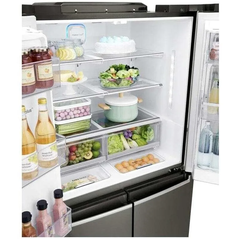 قابلیت InstaView این یخچال با دو ضربه آرام روی شیشه، چراغهای داخلی را روشن کرده و محتویات قفسه درب را بدون باز کردن درب اصلی نشان میدهد. این ویژگی باعث حفظ سرمای داخلی و کاهش مصرف انرژی میشود. طراحی Door-in-Door نیز امکان دسترسی سریع به اقلام پرمصرف مانند نوشیدنیها و سسها را فراهم میکند.