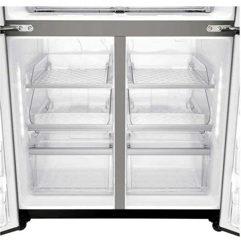 این یخچال ساید بای ساید با رنگ دودی جذاب و بدنه استیل ضد اثر انگشت، جلوهای مینیمال و مدرن به آشپزخانه شما میبخشد. دستگیرههای مخفی و نمایشگر LED لمسی، ظاهر یکدست و شیک دستگاه را تکمیل میکنند.