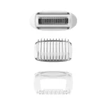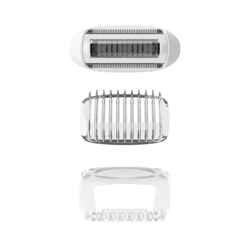 دستگاه مجهز به سری ماساژور، شیور (تیغ اصلاح)، و سری اصلی اپیلاتور است.