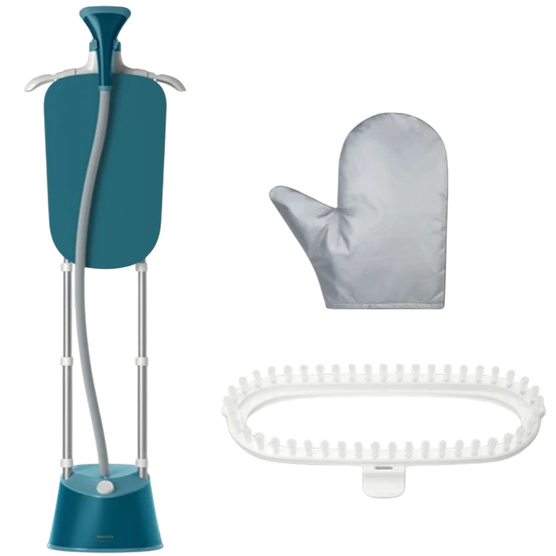 همراه این مدل یک دستکش حرارتی محافظ، سری برسدار مخصوص پارچههای ضخیم، دفترچه راهنما و میز اتو ارائه میشود.